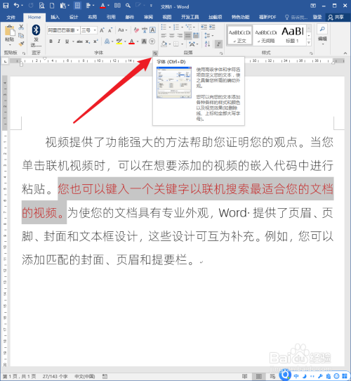 第一种方法:在【字体】中设置。选中红色文字,点击【字体】设置启动按钮。