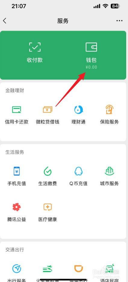 进入到服务界面,点击【钱包】。