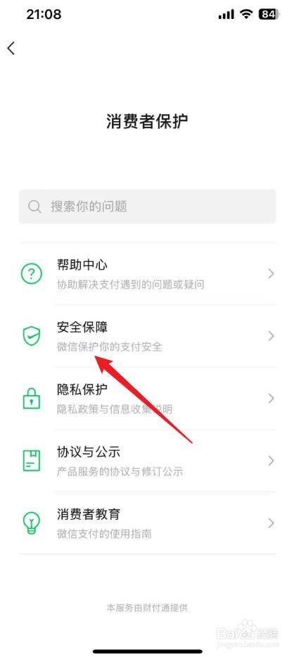 进入到消费者保护界面,点击【安全保障】。
