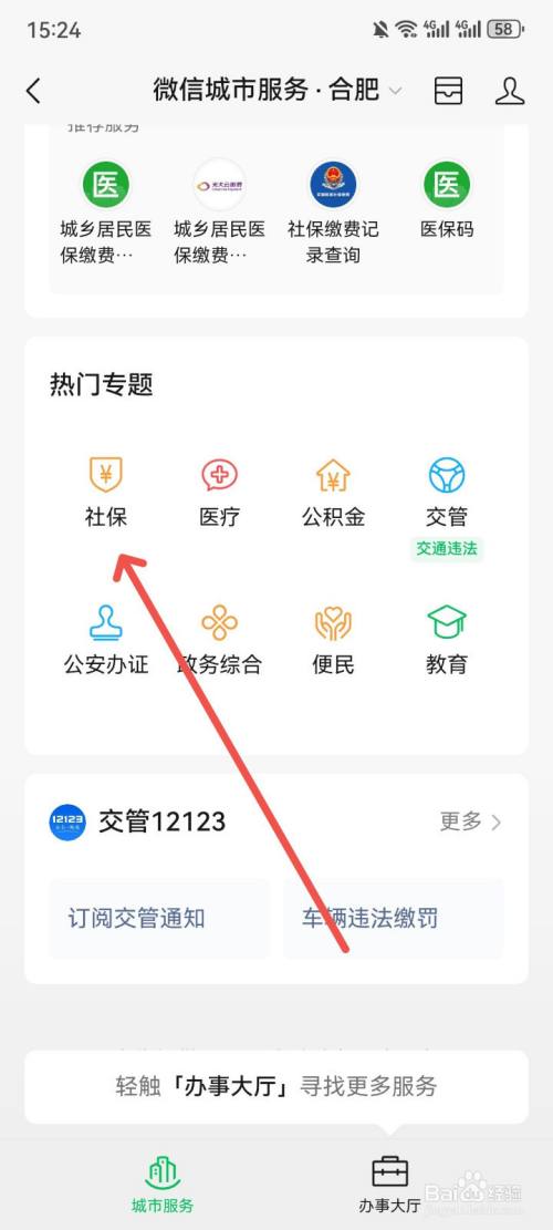 接着,进入本地城市服务页面,点击【社保】