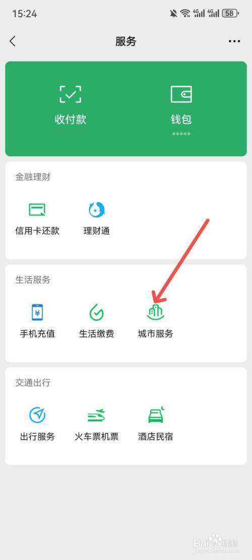 服务页面,点击【城市服务】