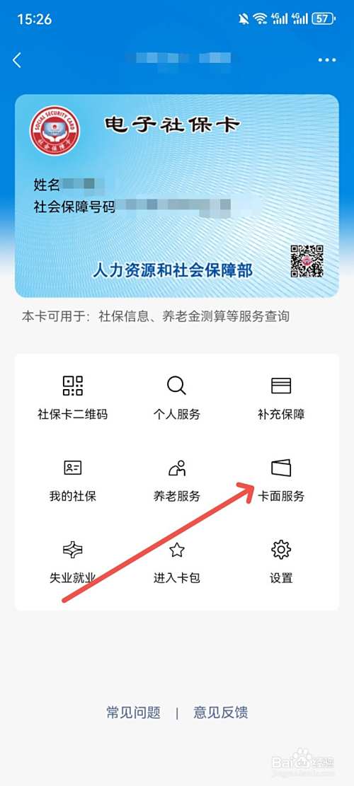 接着,进入电子社保卡页面,点击【卡面服务】