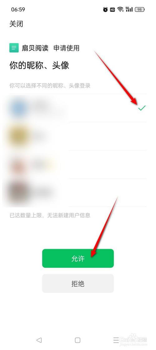 勾选一个微信账号,点击"允许"即可成功绑定微信。