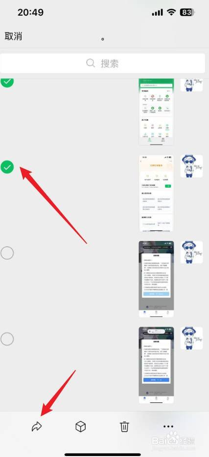 进入多选编辑,勾选要转发的聊天记录内容,点击【转发】膨辞图标。