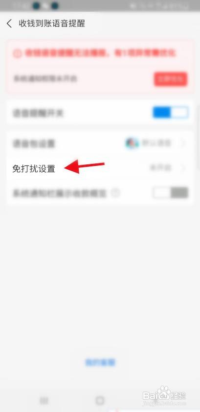弹出窗口点击上面的收钱到账语音提醒选项。