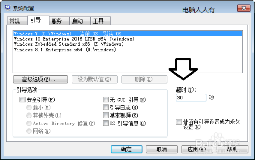 修改菜单显示等待时间(默认是30秒)。