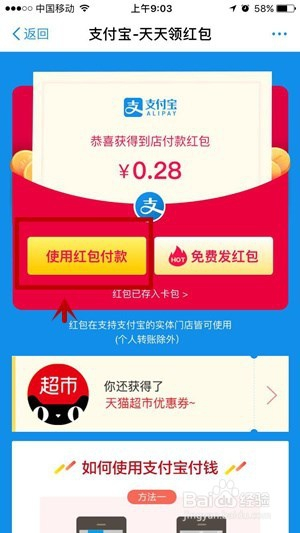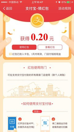 支付宝为了让使用者有更好的购物体验,推出的每日领红包。