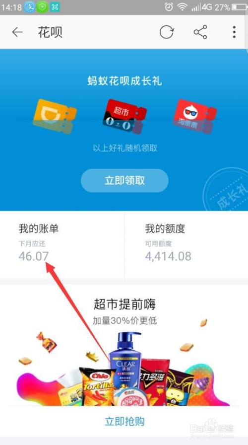 第二,进入花呗后,会看到“我的账单”里面有多少要还的钱,点击该资金。