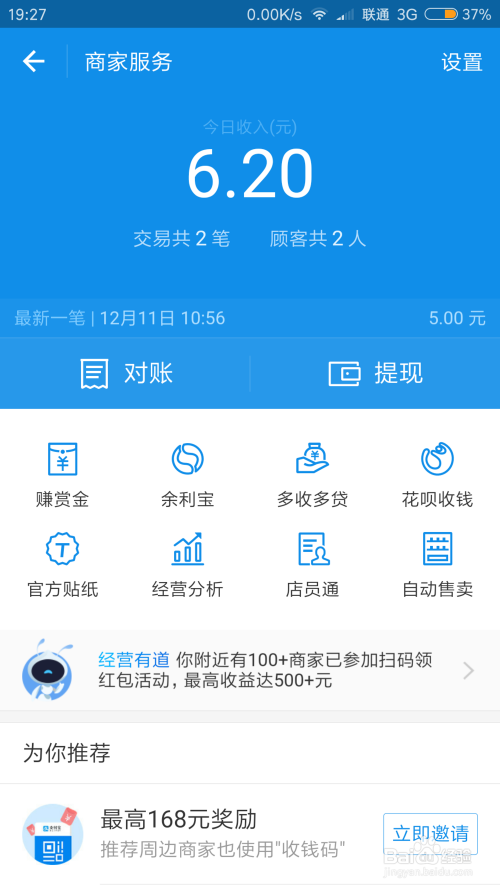 顾客通过领取红包后商家会得到同样的赏金,如图所示。
