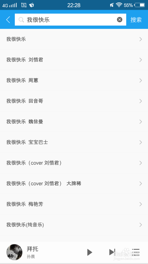 登录上以后,点击搜索一栏,输入要找的音乐的名字,比如”我很快乐“,就可以在搜索栏中输入”我很快乐“。