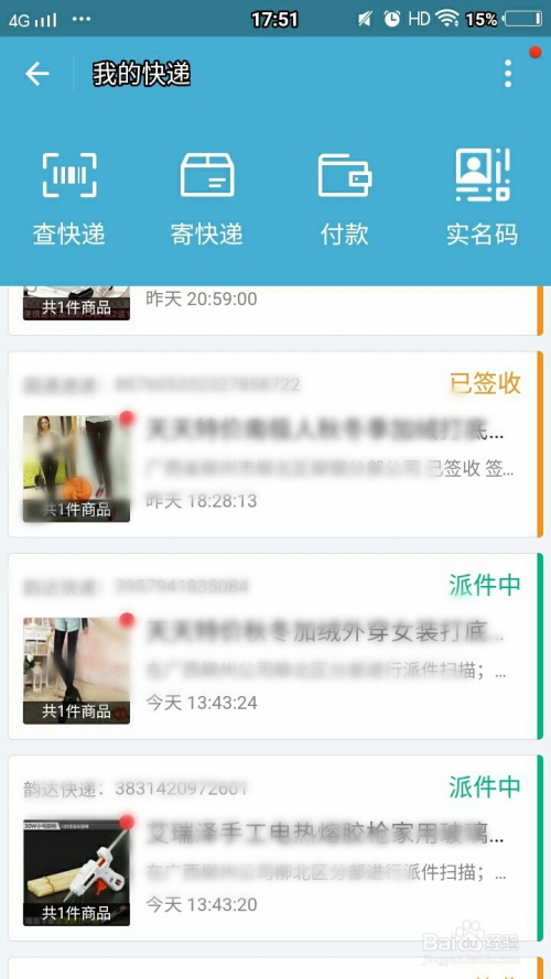 点击进入我的快递,就可以看到我们所有的物流信息。