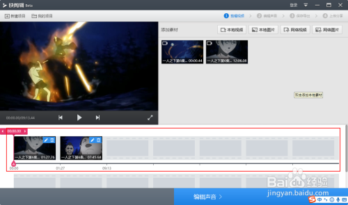 点击录制完成,系统自动将录制完成的文件导入快剪辑编辑区中!接下来的操作便是视频剪辑部分。