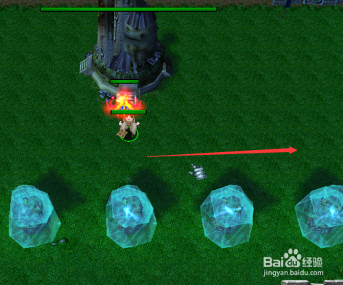 英雄在基地附近出生后,直接往地图的右侧走,如下图所示。