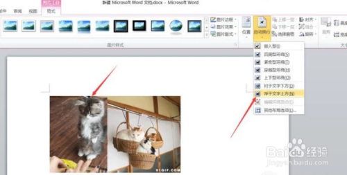 我们选中其中一张图片,点击右上角的:自动换行,设置为:浮于文字上方。