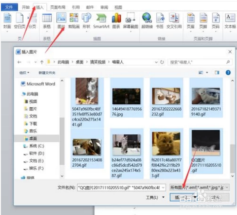 打开要添加重叠图片的word文档,点击:插入— 图片 ,选择多张图片插入。