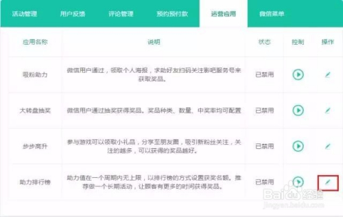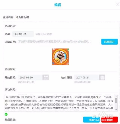 3、点击 “助力排行榜”后的“编辑”按钮,即可对活动进行设置。