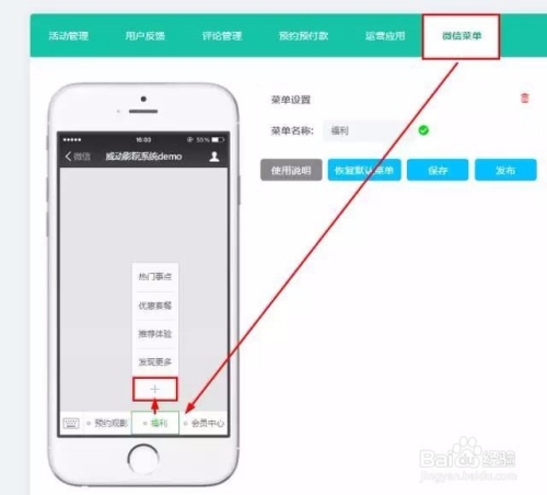 1、点击“微信菜单”,选择屏幕左下方的菜单,即可对公众号的“主菜单”或“子菜单”进行设置。
