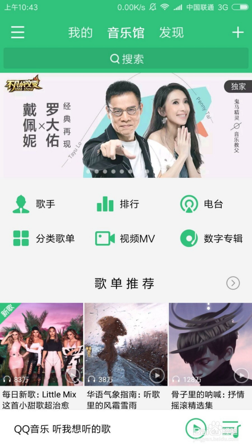 在我的旁边点击音乐馆 ,点击音乐馆之后就可以打开QQ音乐正在直播的频道了