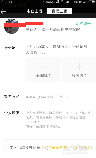 如果是电台主播的话,要求比较严格,相当于你开启的是一个你自己的自频道,在写简介的时候就必须要求在XX平台创建过XX电台,还要有订阅量以及粉丝量的要求。