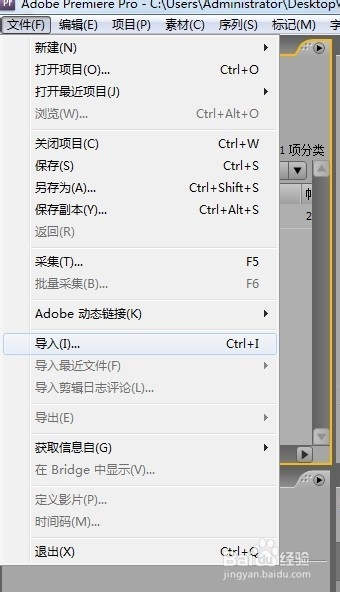 在项目面板导入视频有三种方法:1. 选择文件→导入命令。2. 双击项目面板(空白处) 3. Ctrl+I快捷键