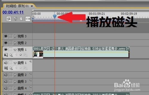 拖动播放磁头在节目,在面板可以查看视频,点击一下播放按钮可以预览播放视频