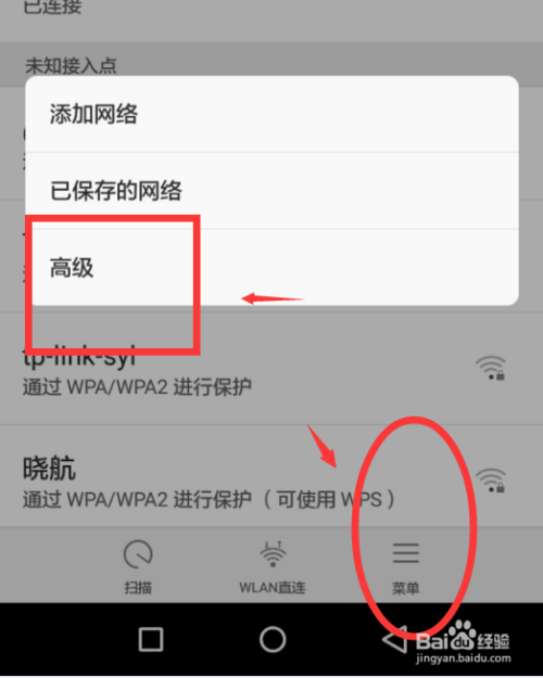 第三种方法:选择设置-打开WLAN无线网开关-点击进入-选择菜单-进入高级选项。