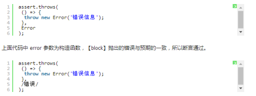 上面代码中 error 参数为正则表达式,【block】抛出的错误满足正则表达式,所以断言通过。