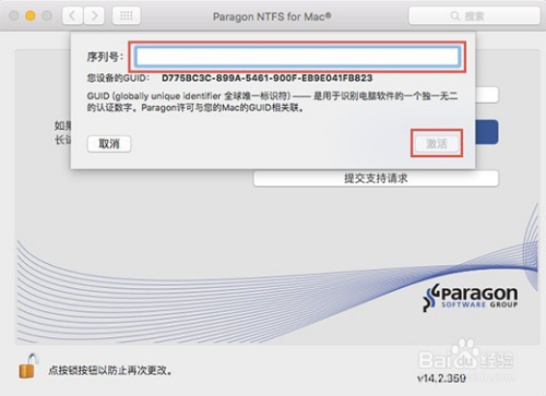 随后,向输入框中正确输入NTFS for Mac激活码,输入后“激活”按钮会立即变为可点,直接点击便可激活,如下图所示: