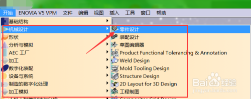 首先启动软件,进入软件任何一个模块中,如这里进入其中的零件设计模块,在软件的每一个模块中,都有一些不同的工具栏,如果关闭了,恢复初始布局的方法完全相同。