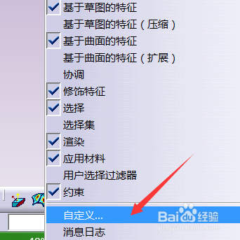 如果是开启电脑,并第一次运行该软件,打开自定义菜单需要较长一段时间。打开自定义菜单后,点击“工具栏”选项卡,可以打开工具设置界面。