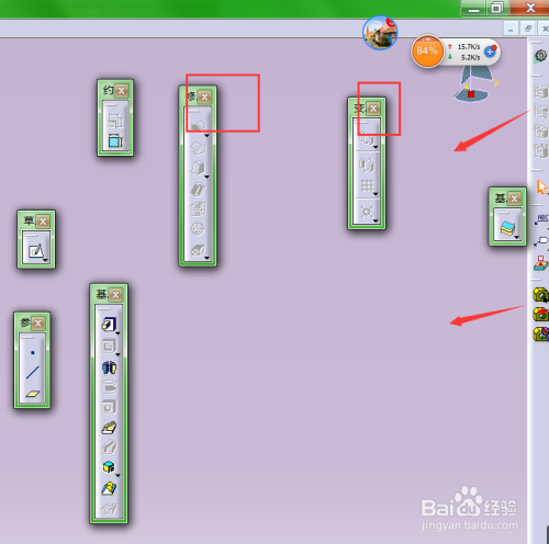 进入零件设计模块后,可以根据自己需要拖动各工具栏,同时对于不需要的工具栏,可以点击关闭按钮,将其关闭。