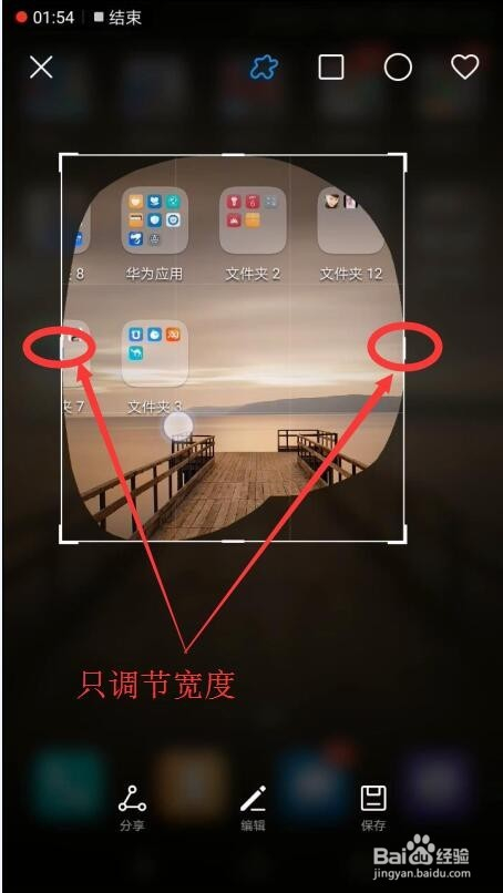 此时刚才用指关节滑动屏幕选中的区域四周出现了一个调节框,可以按住调节框的四个角,在屏幕上进行拖动调节选取的长度和宽度。