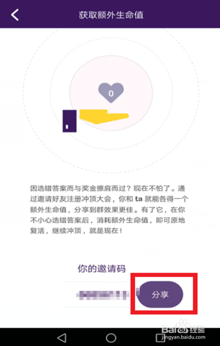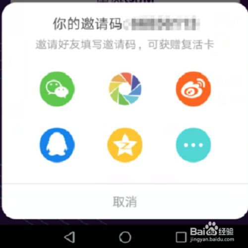 心里记住自己的“邀请码”,按下后面深蓝色的“分享”二字的圆钮。