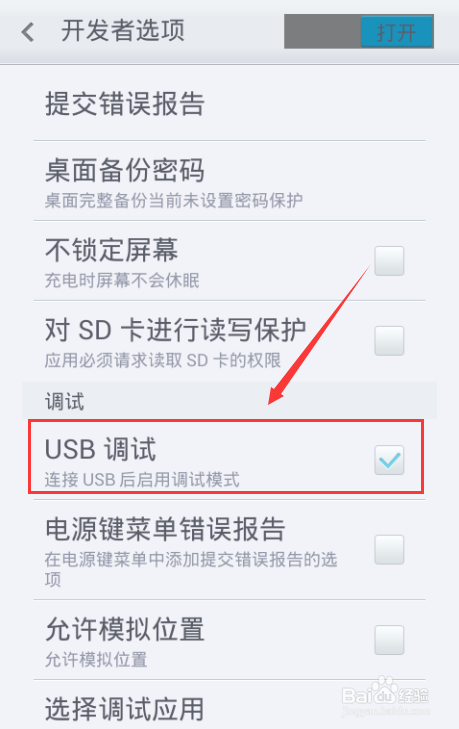 返回“设置”,然后在菜单里就找到了“usb调试”,点击勾选即可。是不是很有意思,其实个性设置是必须经过如此操作的。