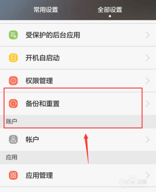 点击进入【备份和重置】后,点击【恢复出厂设置】。