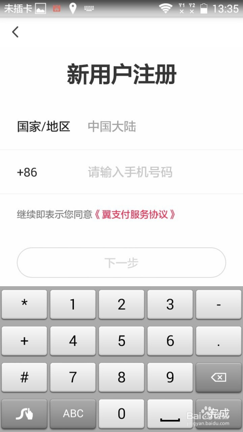 打开翼支付,点击“注册”。