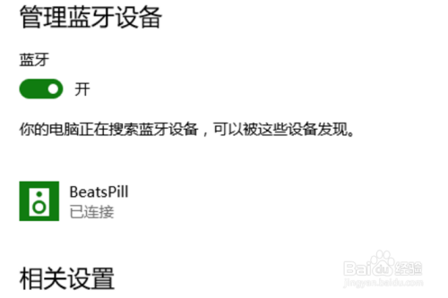 等配对完成了,它就会显示“已连接”,这意味着电脑已经和音箱连接上了,我们可以用音箱来听电脑的音乐。