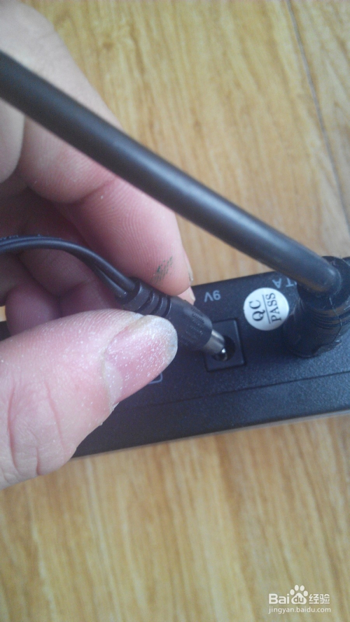 如图所示,接着把电源线插入无线接收器。另一端插上电源。