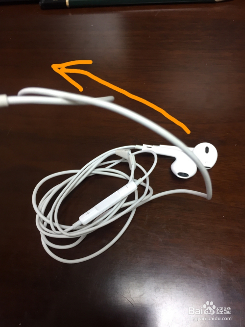 先将原本缠绕在一起的耳机线解开。平摊在桌面上。