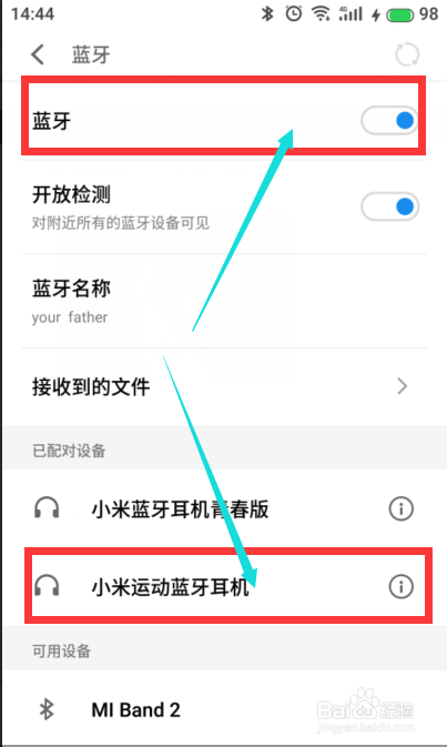 打开手机的蓝牙功能,开放对附近设备的检测,然后会在搜索的设备中找到名为‘小米运动蓝牙耳机’,点击进行配对。