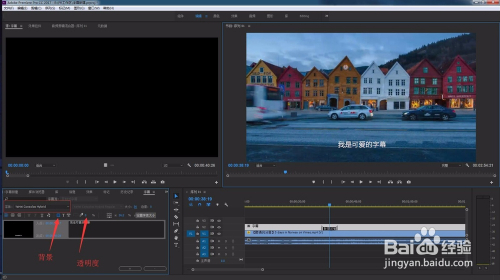 调整字幕字体和大小、描边等,默认是有黑色的背景的,很难看,我们可以通过调整背景透明度为0来去掉黑色背景。