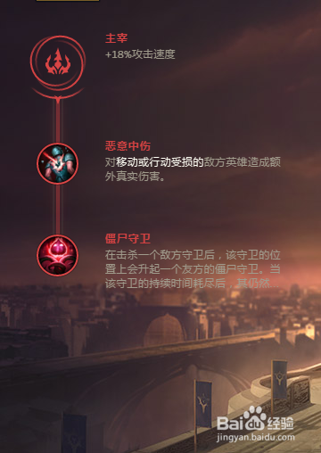 选择“主宰”作为副系符文(爆发伤害和近身手段)。在副系符文1里选择“恶意中伤“,千珏有减速技能,可以额外打出真实伤害;在副系符文2中选择”僵尸守卫“,增强前期千珏的视野控制能力。