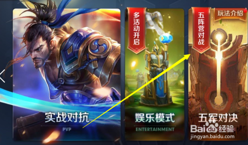 首先,五军对决在进入游戏界面的如图所示的地方点击进入。