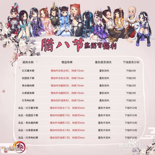 省钱攻略2:通过日常活动,矿车、首次跑商、大战、茶馆、龙门吃鸡给腊八食盒,腊八食盒可以随机开出佳字开头的材料,佳字开头的材料可以大大增加紫色粥品的成功率。