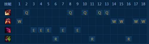 主E副Q技能 Q技能隐身可穿越地形,在游戏初期ganK及其犀利,能快速清理野怪。在进行gank的时候要多加利用Q技能,从其他角度切入进行gank