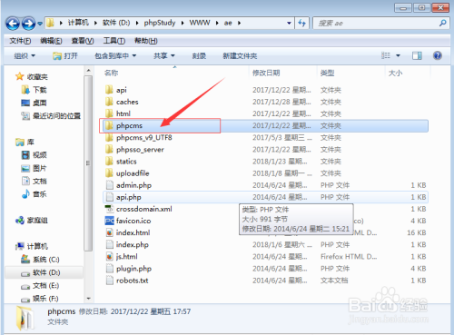 第二步:如果你对v9标签的调用不熟悉,可以先模仿默认的模板,参考别人是怎么调用标签的。找到phpcms文件夹: