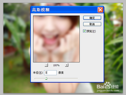 隐藏图层1副本,选择图层1,执行滤镜-模糊-高斯模糊命令,半径设置为5px,点击确定按钮。