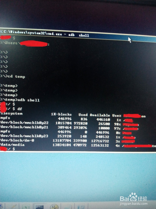 使用adb shell 进入手机收,输入df可以查看手机文件系统状态,如下图所示。