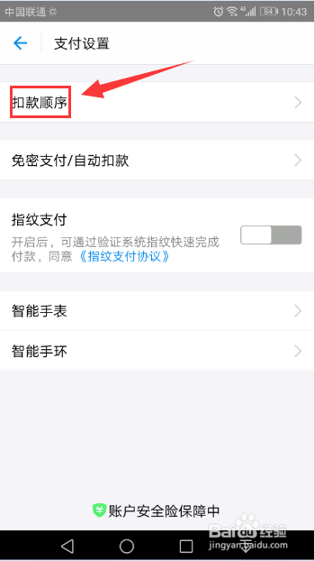 进入【支付设置】页面后,点击页面上方的【扣款顺序】。