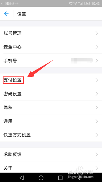 进入【设置】页面后,点击页面中间的【支付设置】。